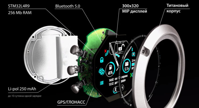 Напомним, что Pandora Watch 2 plus полностью являются нашей собственной разработкой и производятся в Калуге, включая операции изготовления пластиковых и титановых деталей корпуса. Экран часов включен непрерывно (никогда не гаснет) и показывает текущее время и статус автомобиля постоянно. Мы используем самый лучший и дорогой на мировом рынке индикатор с технологией MEMORY-LCD и оригинальную, специально написанную нами для этих часов, собственную операционную систему реального времени. Это позволило создать часы, которые на одной зарядке работают до двух недель в полнофункциональном режиме, не выключая индикатор. И конкурент в этом виде «спорта» во всём мире у них только один – продукт компании Garmin – часы Garmin Fenix (5-й и 6-й серии).