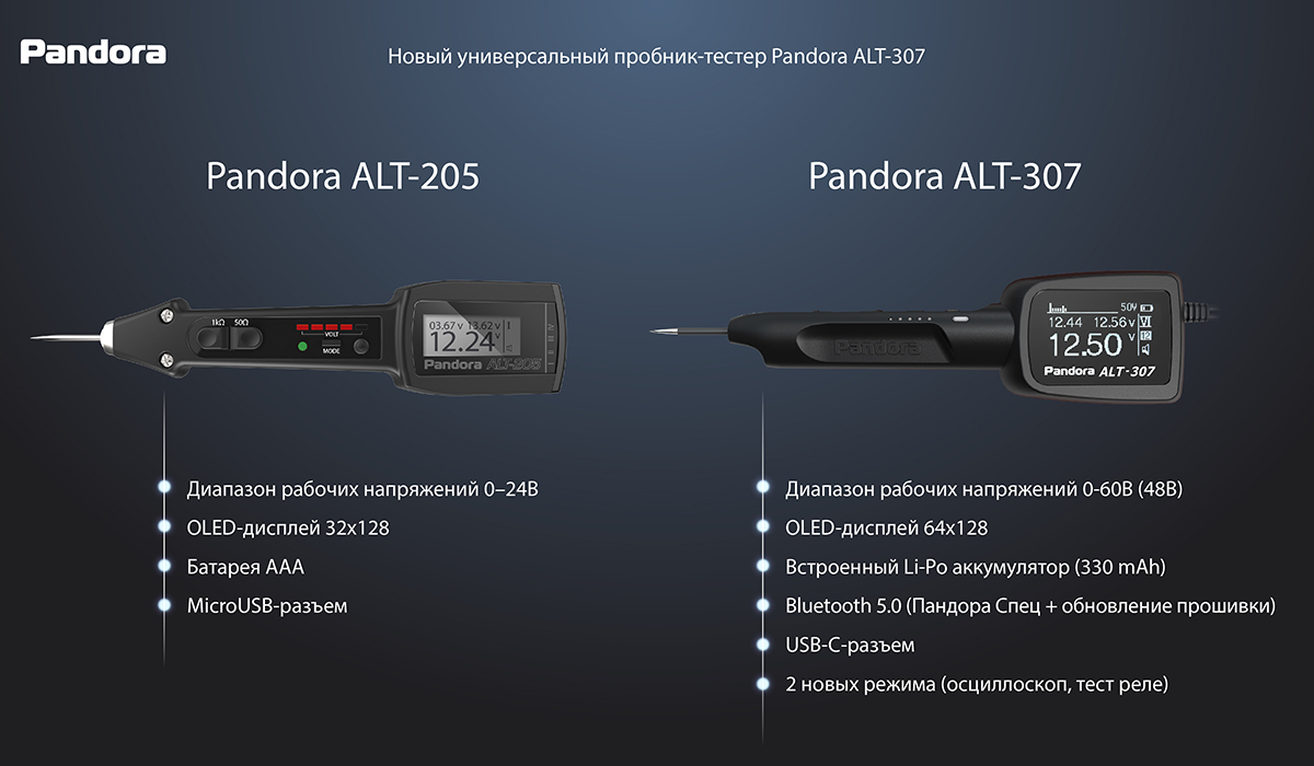 Мы абсолютно уверены, что в новой редакции Pandora ALT-307 ждёт не менее яркое и успешное будущее, чем его предшественника, и в очередной раз новинка будет признана специалистами самым лучшим многофункциональным пробником-тестером в мире.