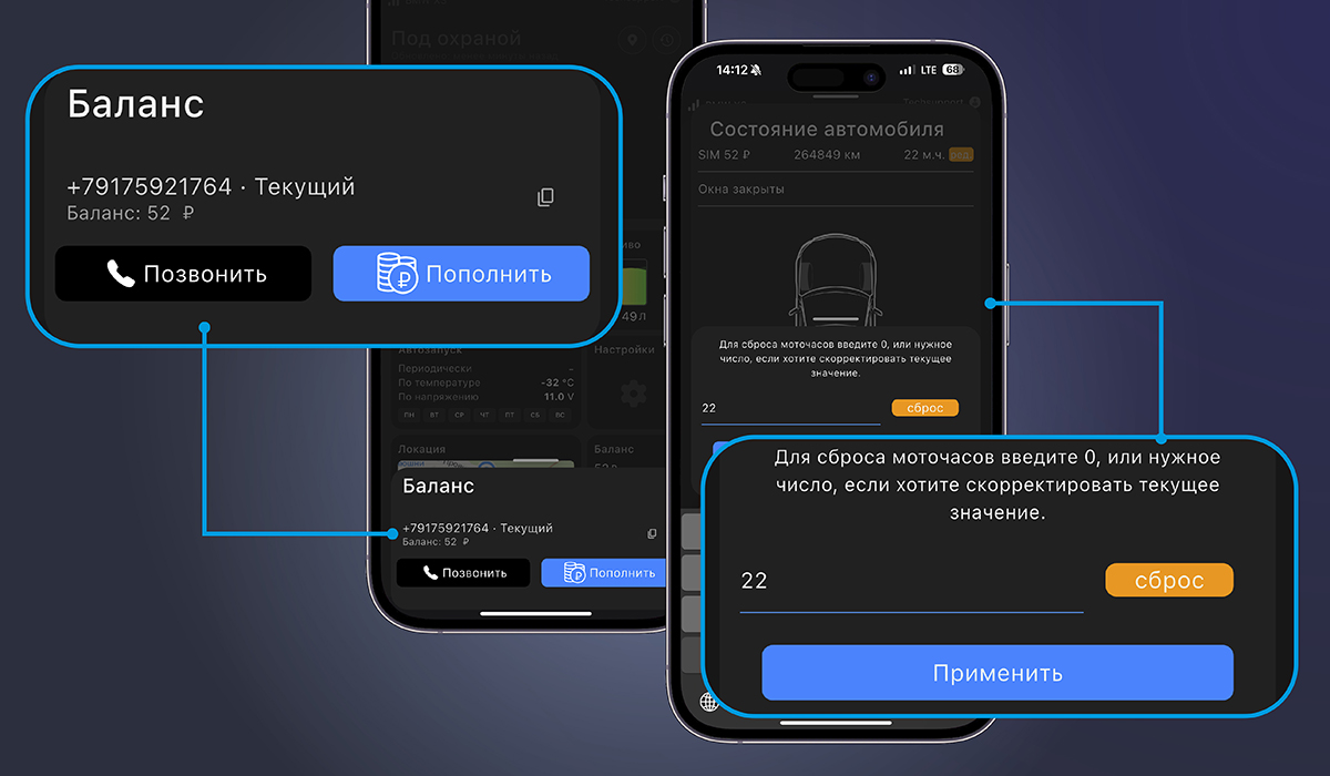 Кроме того, на этом же экране расширенных статусов добавлен счётчик моточасов автомобиля — важный показатель, который считает реальное время работы двигателя внутреннего сгорания, и на который многие пользователи ориентируются при определении сроков замены моторного масла. Мы постарались сделать этот параметр максимально точным и удобным: во-первых, моточасы считаются только в те моменты, когда двигатель работает и его обороты не равны нулю — что особенно важно для гибридов, способных передвигаться с выключенным ДВС. Во-вторых, у пользователя есть возможность в любой момент не только сбросить счётчик моточасов, но и откорректировать его при необходимости — буквально в два действия.