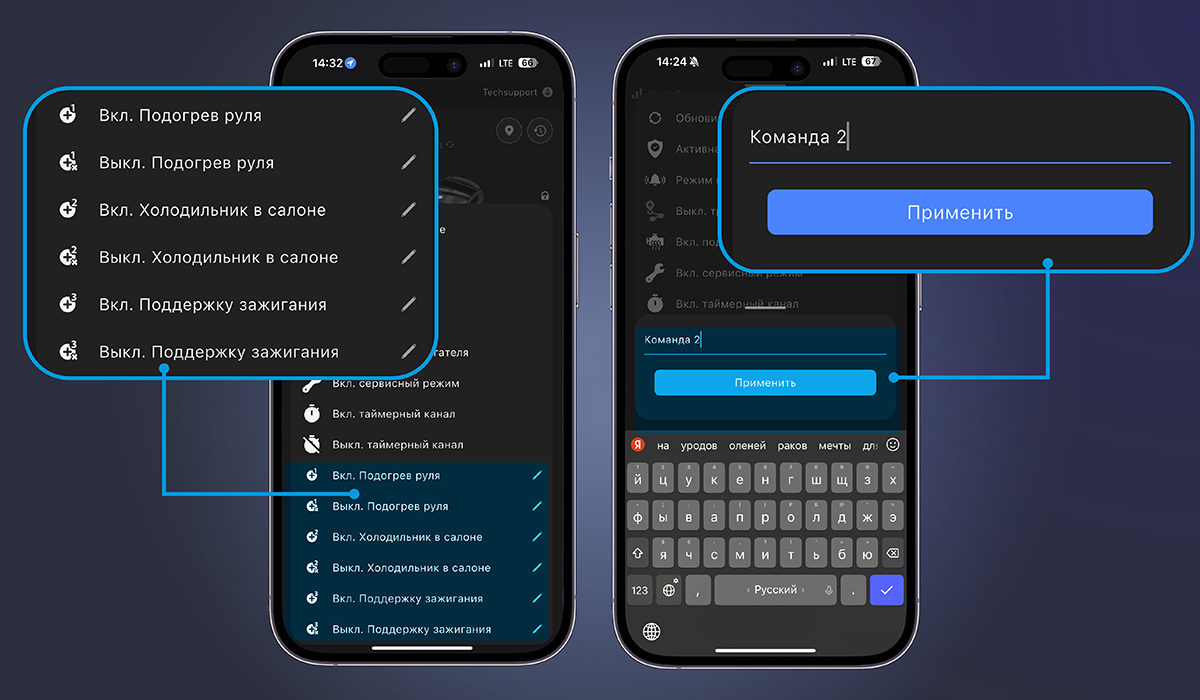 В приложении также добавлены три дополнительные команды, которые сейчас можно назначить на аналоговые выходы системы либо на CAN-команды, заложенные в код конкретной модели. В ближайшем будущем появится возможность использовать их и в таймерных каналах с настраиваемой логикой. Как приятный бонус — в приложении можно задать собственное название каждой команды, которое сохранится локально.